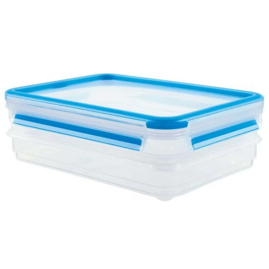- Lieferumfang: 1 Emsa Aufschnittbox-System Clip & Close, 2 Boxen und 1 Deckel, Volumen: 2 x 0.6 Liter, Maße: 22,7 x 16.7 x 8 cm (L x B x H), Farbe: Transparent/Blau