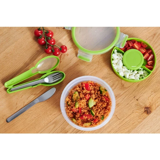 EMSA Besteck-Set Clip & Go mit Etui aus Kunststoff, grün/silber, 3-teilig (1 Set)