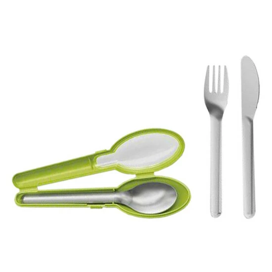 Das 3-teilige Besteckset aus Edelstahl, geschützt im praktischen Kunststoff-Etui, ist der ideale Begleiter im Alltag zur Arbeit oder auf Reisen.