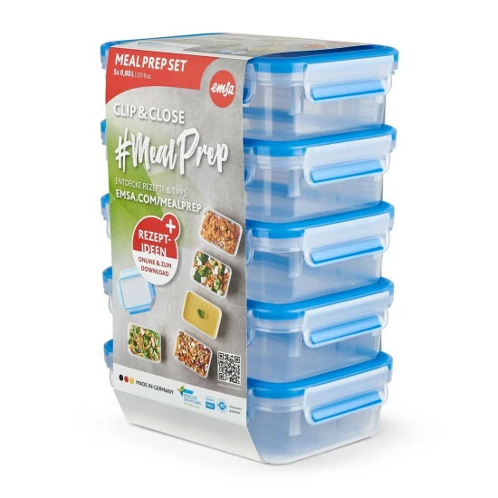 CLIP & CLOSE Mealprep-Set: 5 Teile für 5 Tage! Bereiten Sie Ihre Gerichte vor. Eine Box für jeden Tag. Frische Lebensmittel halten länger frisch, 100 % auslaufsichere Frischhaltedose: ideal für den Transport flüssiger Lebensmittel und absolut geruchlos.