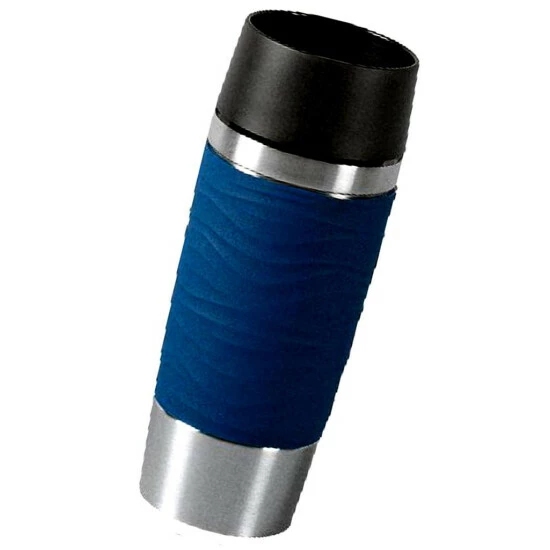 Material: Edelstahl, Kunststoff, Silikon (Manschette) Farbe: dunkelblau Füllmenge: ca. 0,36 Liter Mit Quick-Press-Verschluss Dank der 360 Grad Öffnung kann von jeder Seite getrunken werden Spülmaschinenfest Der doppelwandige Isolierkolben hält den Inhalt bis zu sechs Stunden heiß oder bis zu 12 Stunden kalt Die Silikonmanschette sorgt für einen angenehmen Tragekomfort Mit Wellenmuster