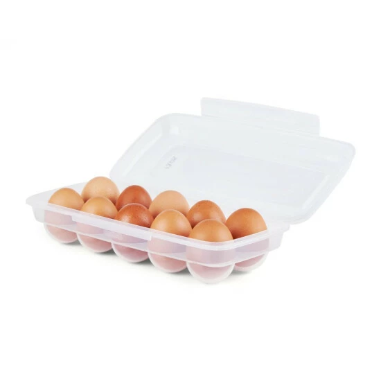 Platzsparend und hygienisch aufbewahren – kein Problem mit der Serie „Clip&Close“ von Emsa. Die Eierbox hat Platz für 10 Eier und ist aus lebensmittelechtem und robustem Kunststoff. Mit dieser smarten Aufbewahrungslösung können Sie Ihre Eier direkt frisch auf dem Markt oder im nächsten Hofladen kaufen. Besonders umweltfreundlich, da Sie nicht länger auf Pappkartons angewiesen sind. Besonders schön: mit Beschriftungsfeld für das Haltbarkeitsdatum. Spülmaschinengeeignet und temperaturbeständig.
