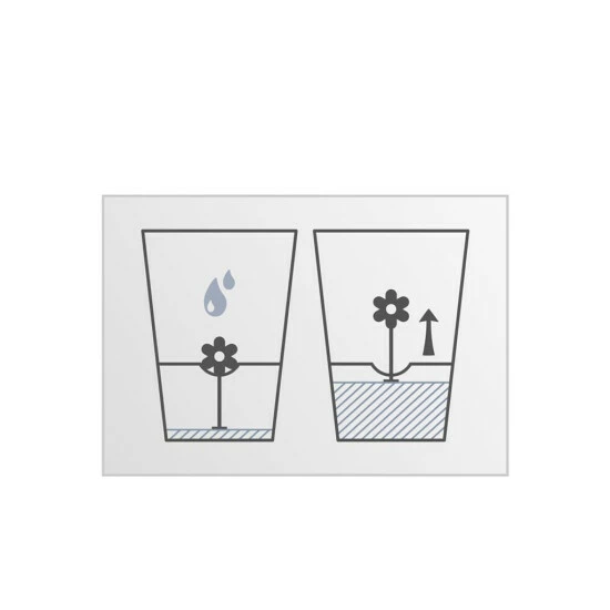 Ist eine Pflanzenhöhe von ca. 1,5 cm erreicht, kann die Glocke abgenommen werden. Dank eines innenliegenden Bewässerungsdochts, versorgt sich die Pflanze nahezu von selbst. Eine dekorative Blume dient als Wasserstandanzeiger und gibt an, wann es wieder Zeit ist zum Gießen.