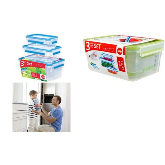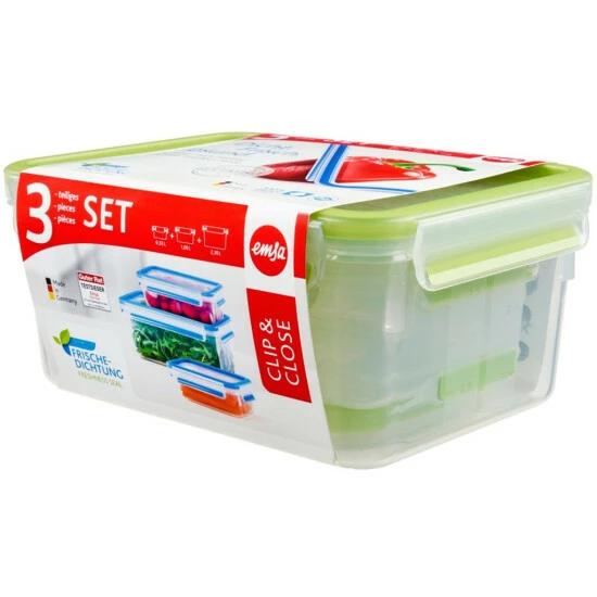 Emsa Frischhaltedosen Set Clip & Close Material: Kunststoff Farbe: grün, transparent Füllmenge: ca. 0,55 Liter, 1 Liter und 2,3 Liter