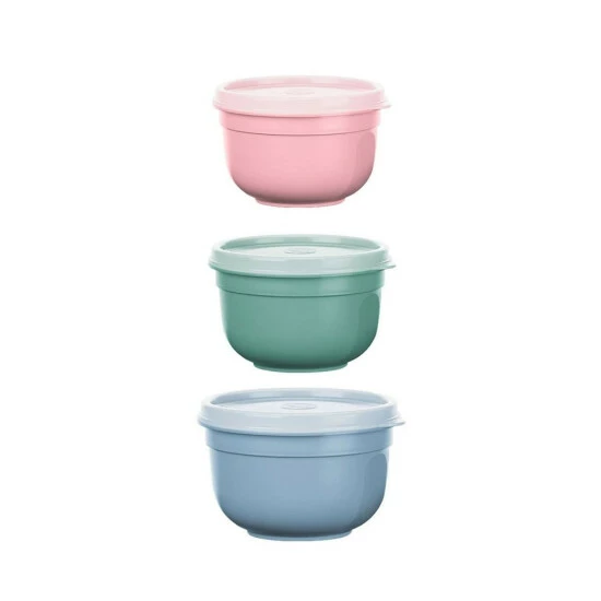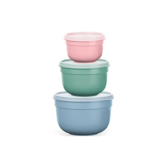 Das Original in neuen Farben! Die beliebte SUPERLINE Serie sorgt ab sofort nicht nur für frische und knackige Lebensmittel, in den neuen Pudertönen bringt sie frischen Wind auf den Tisch. Ob Salate oder Snacks, zum Frischhalten oder Servieren – mit diesem die perfekte Schüssel für den gewünschten Gebrauch. Geeignet für frischen Set in drei unterscheidlichen Größen findet jeder Küchenschrank, Kühlschrank, Mikrowelle (ohne Deckel) und einfache Reinigung in der Spülmaschine. Lieferumfang: 3-teilig