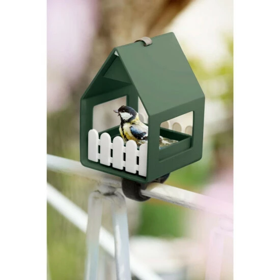 – Verschiedene Anbringungsmöglichkeiten. Je nach Bedarf kann das Futterhaus aufgehängt, hingestellt oder an einem Geländer befestigt werden