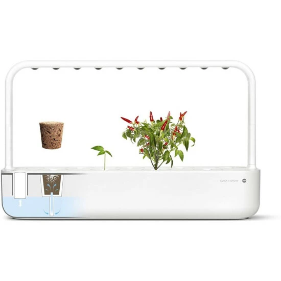 Der SMART GARDEN CLICK & GROW ist der perfekte Kräutergarten für den Haushalt. Die Aufzucht in dem Indoor Garten ist sehr einfach und lässt die Kräuter schnell sprießen und wachsen. Dazu müssen die Pflanzkapseln nur in die dafür vorgesehenen Behälter eingesetzt werden. Die Kapseln mit SMART SOIL Technologie beinhalten ein hochwertiges Saatgut inklusive aller Nährstoffe, die die Pflanzen benötigen, sodass kein Nachdüngen mehr erforderlich ist. Anschließend muss der Wassertankbehälter aufgefüllt und die LED-Beleuchtung eingeschaltet werden. Und der Rest passiert wie von alleine.