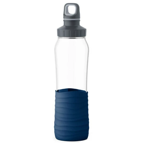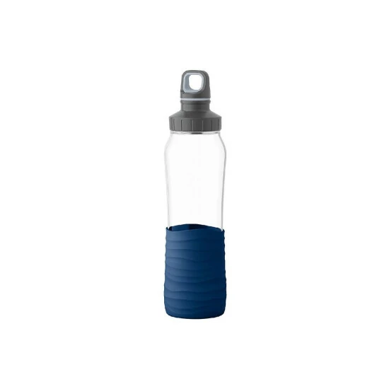 EMSA Trinkflasche Drink2Go Glas 0,7l Silikonmanschette dunkelblau, blau