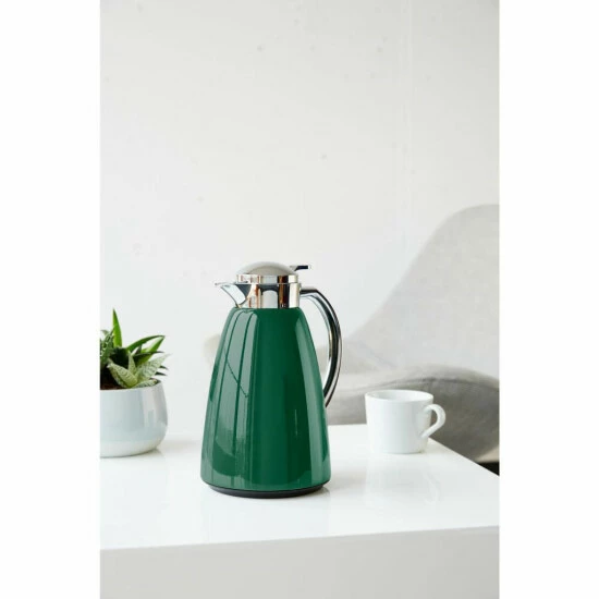 Die CAMPO Isolierkanne von EMSA hat eine hochglanzlackierte Oberfläche aus Edelstahl und einen mundgeblasenen Glaskolben, der warme sowie kalte Getränke über Stunden isoliert. Dank des praktischen Quick-Tip-Verschlusses lässt sie sich ganz einfach per Daumendruck bedienen.