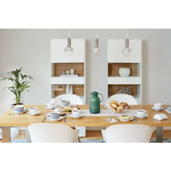 Nichts geht über einen heißen, aromatischen Kaffee oder Tee für besondere Genussmomente. Die richtige Kanne ist daher ein Muss. In den Isolierkannen von Emsa bleibt ihr Getränk bis zu 12 Stunden heiß – wie frisch gebrüht. Sie sind daher im Büro und auf Festen unerlässlich und kommen in trendigen Farben daher. Farben: rot, aubergine, schwarz, blau-grau, dunkelgrün und taupe. Der hochwertige Glaskolben sorgt für optimale Isolation. So hält die Kanne Heißgetränke bis zu 12 Stunden heiß und Kaltgetränke bis zu 24 Stunden kalt. Volumen: 1,5 Liter.