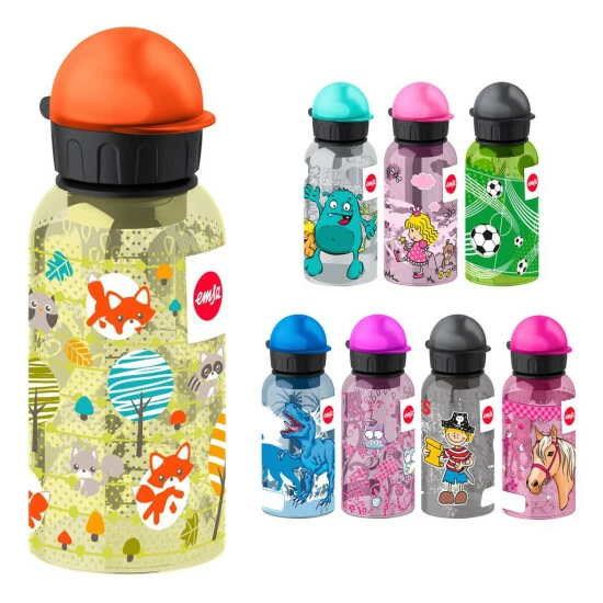 Trinkflaschen sind ideal für unterwegs, zum Mitnehmen in den Kindergarten oder in die Schule. Mit ihren bunten und lustigen Motiven macht den Kindern das Trinken gleich viel mehr Spaß. Weil die Trinkflaschen von EMSA zu 100 % dicht und auslaufsicher sind, können sie bedenkenlos im Rucksack mitgenommen werden.