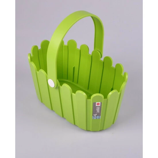 LANDHAUS KÖRBCHEN Blumenkübel 28 x 14 cm, grün als Übertopf oder zur direkten Bepflanzung verstellbarer Tragegriff für Indoor und Outdoor geeignet für zwei 12 oder 13er Pflanzcontainer geeignet idealer Geschenkartikel in 6 starken Landhausfarben