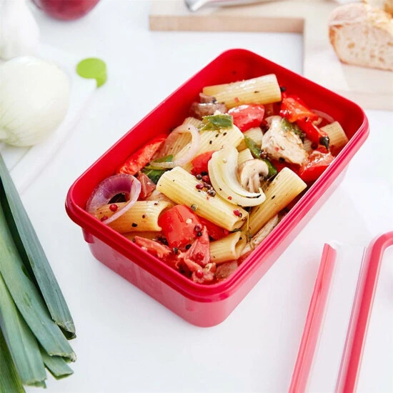 Diese Mikrowellendose eignet sich ideal zum Erwärmen verschiedener Speisen. PP im Verbund mit weichem TPE Dichtungsmaterial. Geeignet für Mikrowelle, Geschirrspüler und Gefrierschrank.