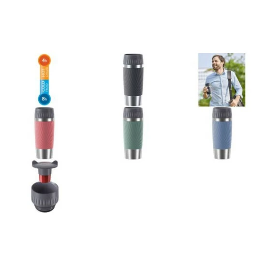 Das Leben ist oftmals hektisch – da zählt jedes kleine Detail! Beginnen Sie den Tag mit einem Isolierbecher, der Ihrem aktiven Lebensstil gerecht wird. Der EMSA TRAVEL MUG EASY TWIST Thermobecher ist Ihr stilvoller Begleiter für unterwegs und überzeugt mit einem 100 % auslaufsicheren Design, auf das Sie sich voll und ganz verlassen können. Der neue, leicht zu öffnende Komfort-Schraubdeckel mit gewohntem 360°-Trinkrand und der intuitive EASY Quick Press Verschluss per Knopfdruck sorgen für ein genussreiches Trinkerlebnis unterwegs! Dank seiner ergonomischen Form und eines Fassungsvermögens von 0,36 L ist der Becher leicht zu transportieren und besticht durch eine stylische Soft-Touch-Manchette mit trendig neuem Streifen-Design. Die an Auto-Getränkehalter angepasste Größe und der rutschfeste Boden bleiben erhalten. Abgerundet wird das Ganze durch eine doppelwandige Vakuum-Isolierung, die die Temperatur von warmen oder kalten Getränken über einen langen Zeitraum konstant hält. Der neue Isolierbecher aus hochwertigem Edelstahl ist BPA-frei und spülmaschinenfest und somit absolut pflegeleicht und hygienisch.