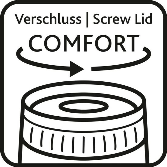 - Neuer Komfort-Deckel: Schraubverschluss mit Rillen-Optik für einfaches Auf- und Zudrehen; integriertes Druckventil für leichte Bedienung des Easy Quick Press Knopfes; 360°-Trinköffnung;