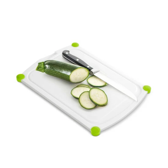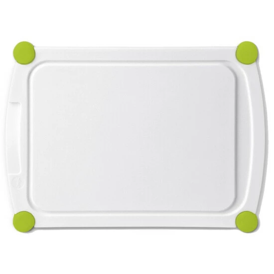 PERFECT CUT Schneidbrett mit Saftrille, Weiß/Grün, 35 x 25 cm Größen: 35 x 25 cm mit Saftrille zum Auffangen von Flüssigkeiten hochelastisches Material – verhindert Abstumpfen der Messer rutschfeste Füße für sicheren Stand Geruchs- und geschmacksneutral