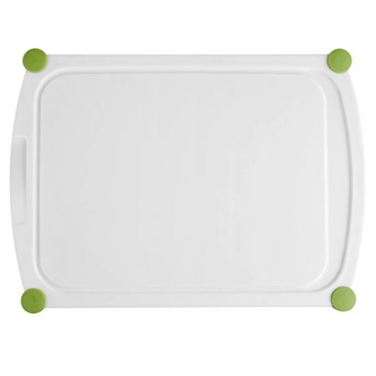 Perfect Cut Tagliere Bianco / Verde 35x25cm , Base antiscivolo per una sicura stabilità , Igienico , Antiodore , Incavi per evitare la fuoriuscita di liquidi , Materiale estremamente elastico – Non danneggia la lama del coltello , Lavabile in lavastoviglie Misure: Lunghezza: 35,1 cm Larghezza: 26 cm Altezza: 1,7 cm , Colore / Motivo: bianco / verde Numero