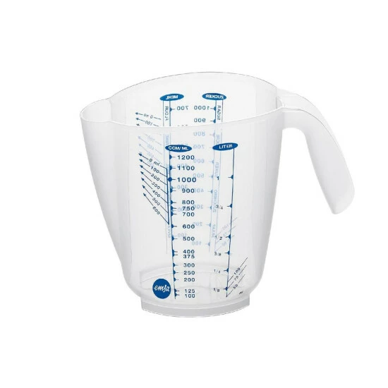 Einfach und schnell klappt die Küchenzauberei mit dem richtigen Backzubehör: Ein hochwertiger Messbecher darf dabei nicht fehlen. Der EMSA Messbecher vereint viele clevere Ideen und überzeugt durch hochwertiges Material sowie sinnvolle Skalen zum Dosieren der Zutaten.
