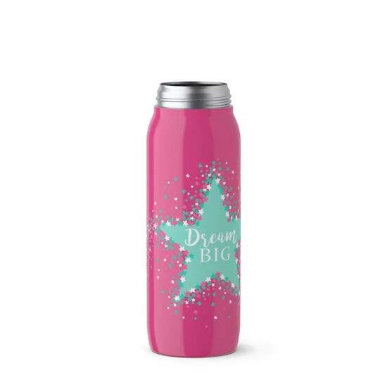 – Drink2Go Trinkflasche: Der Durstlöscher mit Stil für die ganze Familie! – Mit trendigem Star-Dekor – 100 % auslaufsichere wiederverwendbare Trinkflasche, selbst bei kohlensäurehaltigem Wasser – 100 % spülmaschinenfest, ohne Gefahr das Motiv zu beschädigen – Umweltfreundlich: 100 % unbedenklich, komplett frei von BPA – Auto-Close-Kinderverschluss_ Intuitives Öffnen per Drucktaste mit fester Kappe, wenn sie geöffnet ist, und Auto-Close-Verschluss gegen versehentliches Auslaufen – Iso2Go-Design: doppelwandiger Edelstahl ohne Innenbeschichtung – Ausgezeichnete Warm- und Kalthaltung_ kalte Getränke bleiben kalt (12 Stunden) und heiße Getränke heiß (6 Stunden)