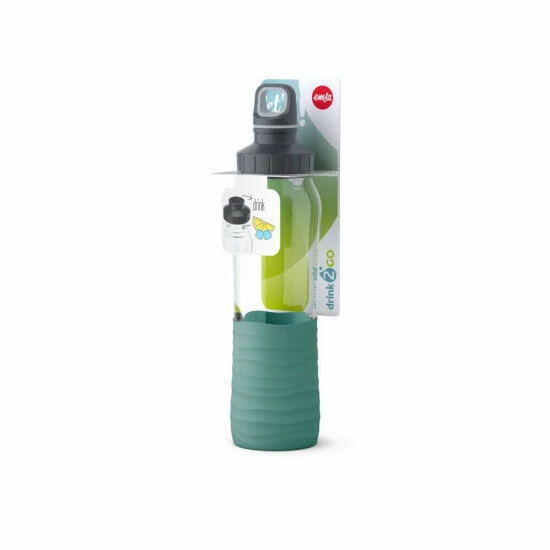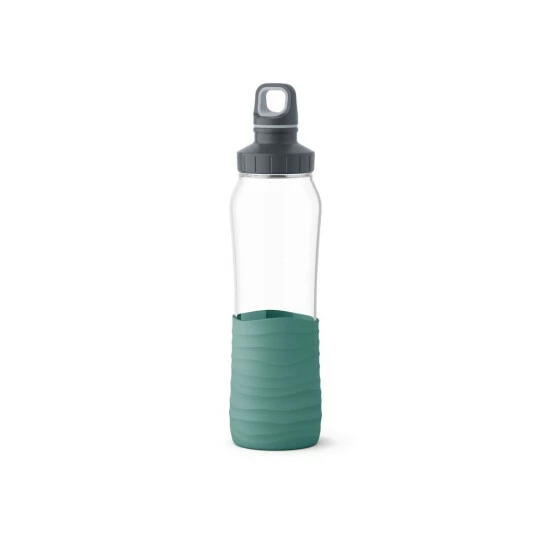 Emsa Trinkflasche Drink2Go, Glas, 0,7 Liter, Silikonmanschette, petrol-grün